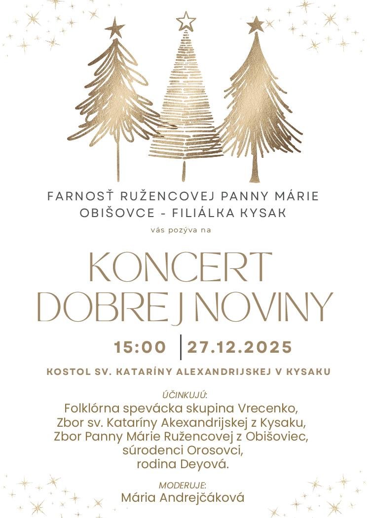Matus Kolcun1 3.koncert Dobrej Noviny 2025 Ďakujem všetkým účinkujúcim, ktorí prispeli do nádherného programu. Taktiež ďakujem všetkým štedrým darcom. Pre projekt Dobrej Noviny sa v Kysaku vyzbieralo 341€. Pán Boh zaplať. Agáta Franková Odkaz na fotoalbum